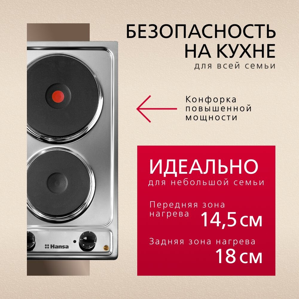Электрическая варочная панель Hansa BHEI301060, двухконфорочная, механическое управление, индикация работы, цвета нержавеющей стали информация: