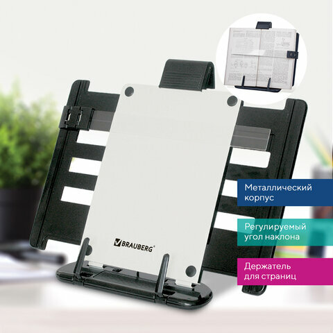 Подставка для книг, учебников, журналов Brauberg, большая, регулируемый угол наклона, раздвижная