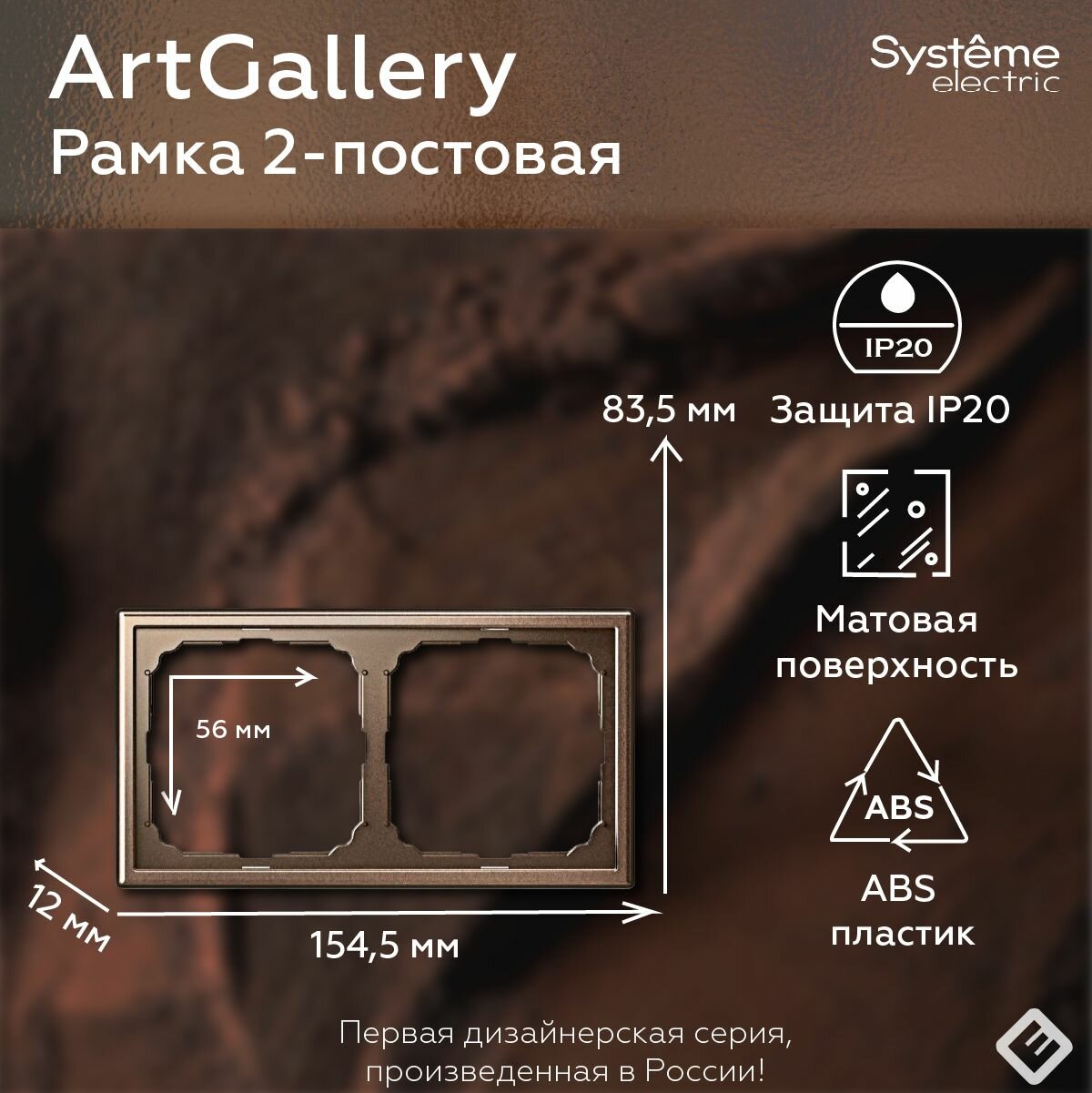 Рамка для розеток и выключателей двухпостовая (Мокко), Systeme Electric ArtGallery информация: