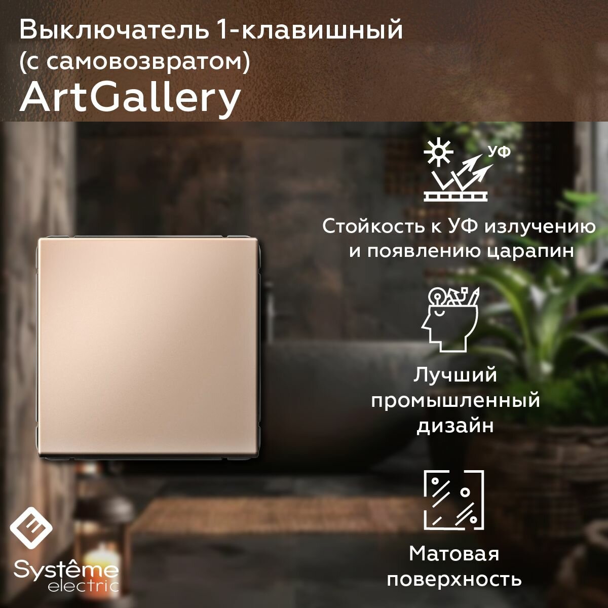 Выключатель одноклавишный с самовозвратом (Песочный), Systeme Electric ArtGallery информация: