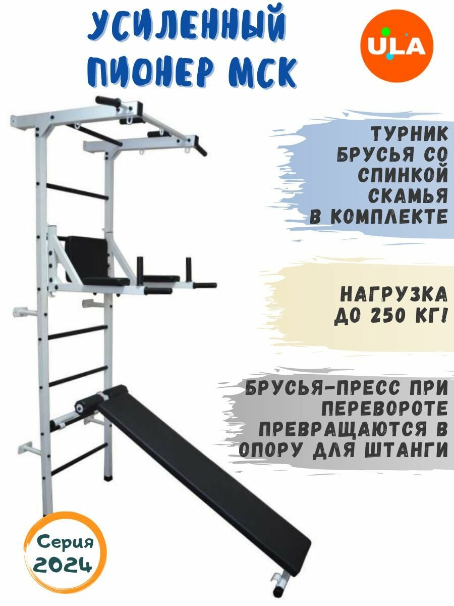 Спортивный комплекс Пионер МСК с турником, брусьями и скамьей, цвет Бело-черный информация: