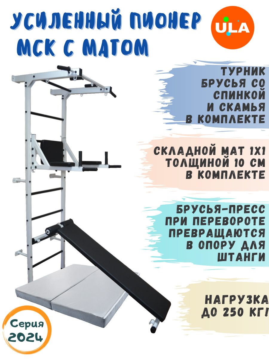 Спортивный комплекс Пионер МСК с турником, брусьями, скамьей и матом 1х1 м, цвет Бело-черный информация: