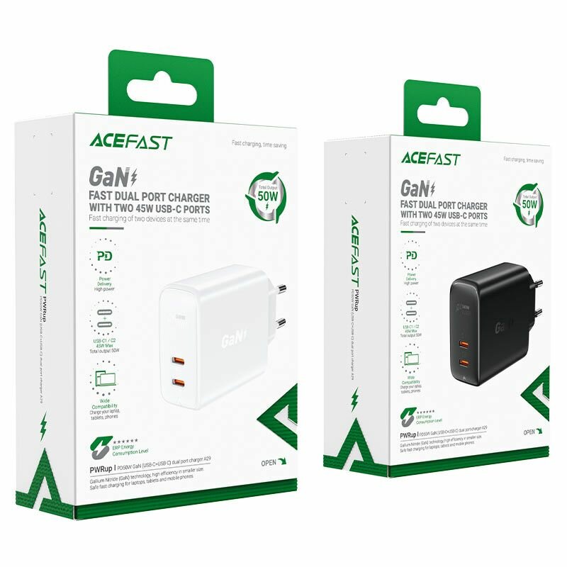 Сетевое зарядное устройство ACEFAST A29 PD50W GAN, USB-C + USB-C, Черный