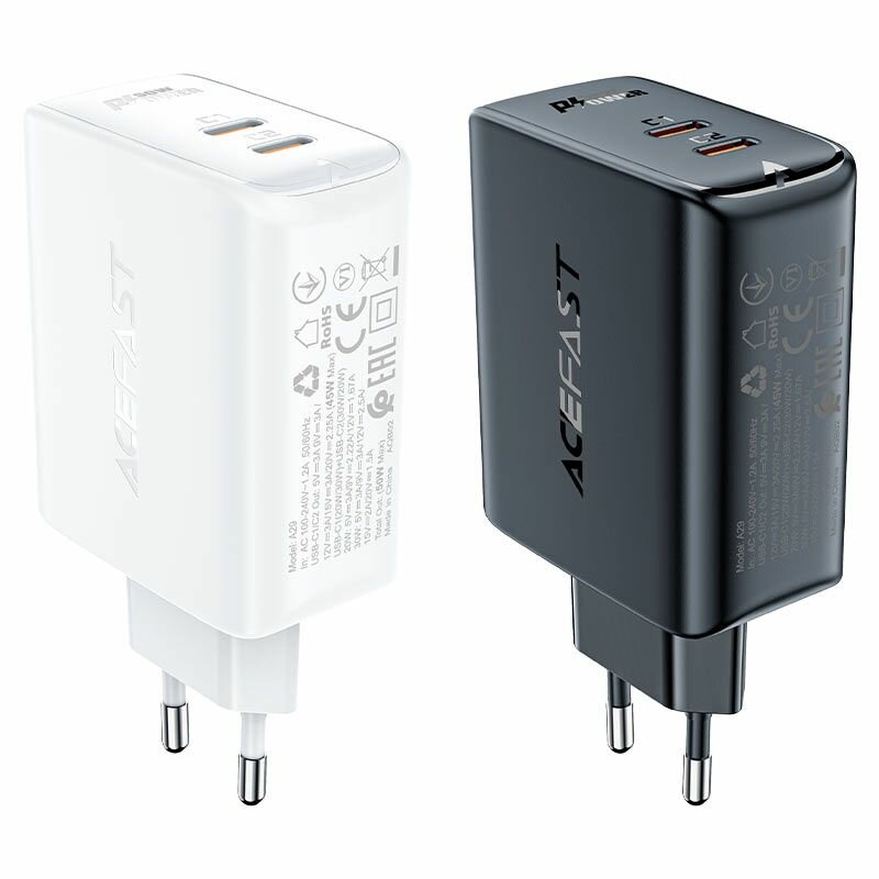 Сетевое зарядное устройство ACEFAST A29 GaN PD50W (2xUSB-C) Fast Charge Wall Charger чёрное (EU)