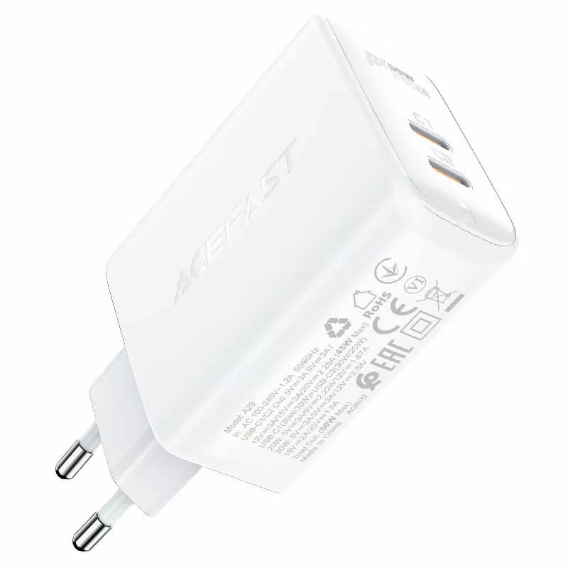 Сетевое зарядное устройство ACEFAST A29 GaN PD50W (2xUSB-C) Fast Charge Wall Charger белое (EU)