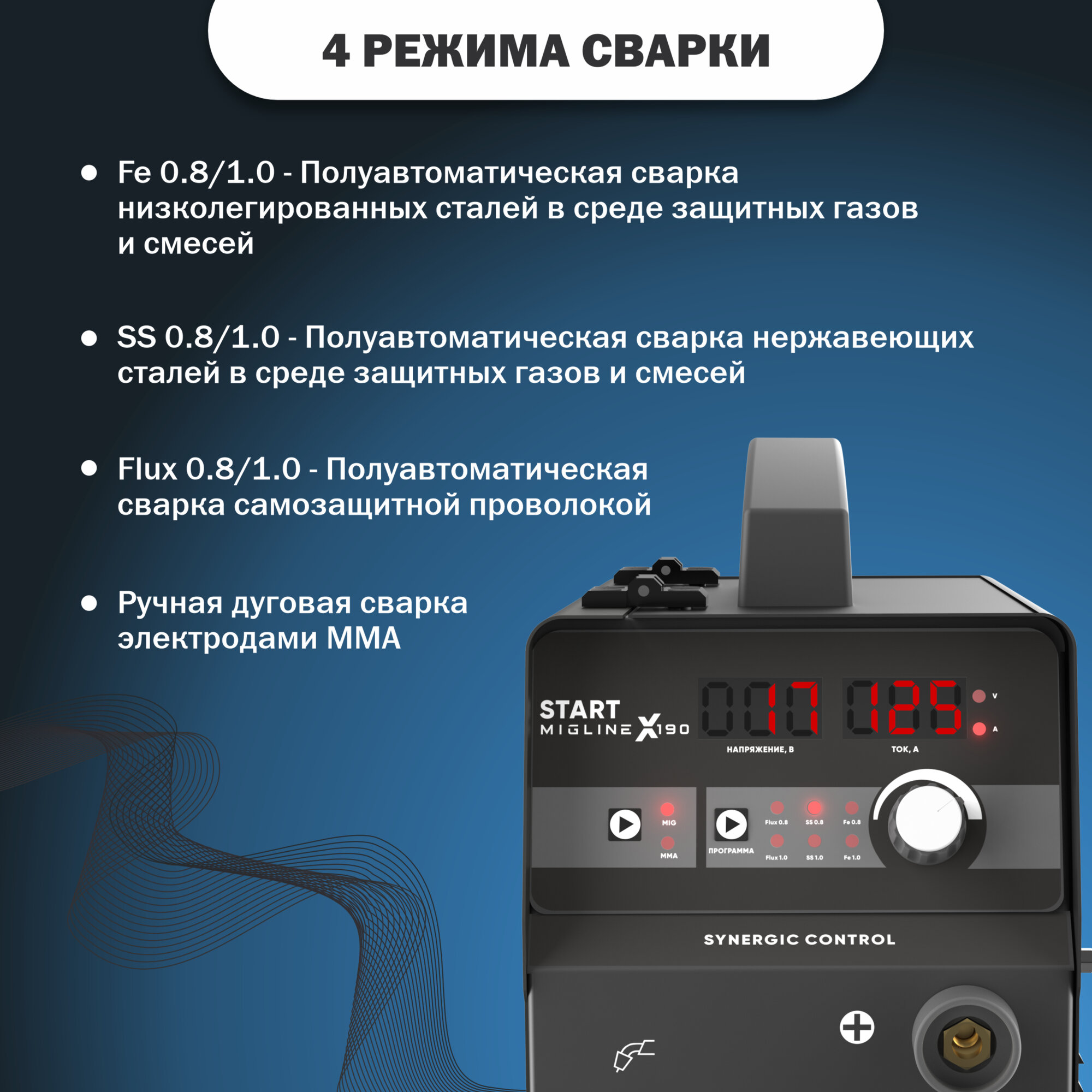 START MigLine X190 (Сварочный полуавтомат синергетический, 190 А, 220 В) информация: