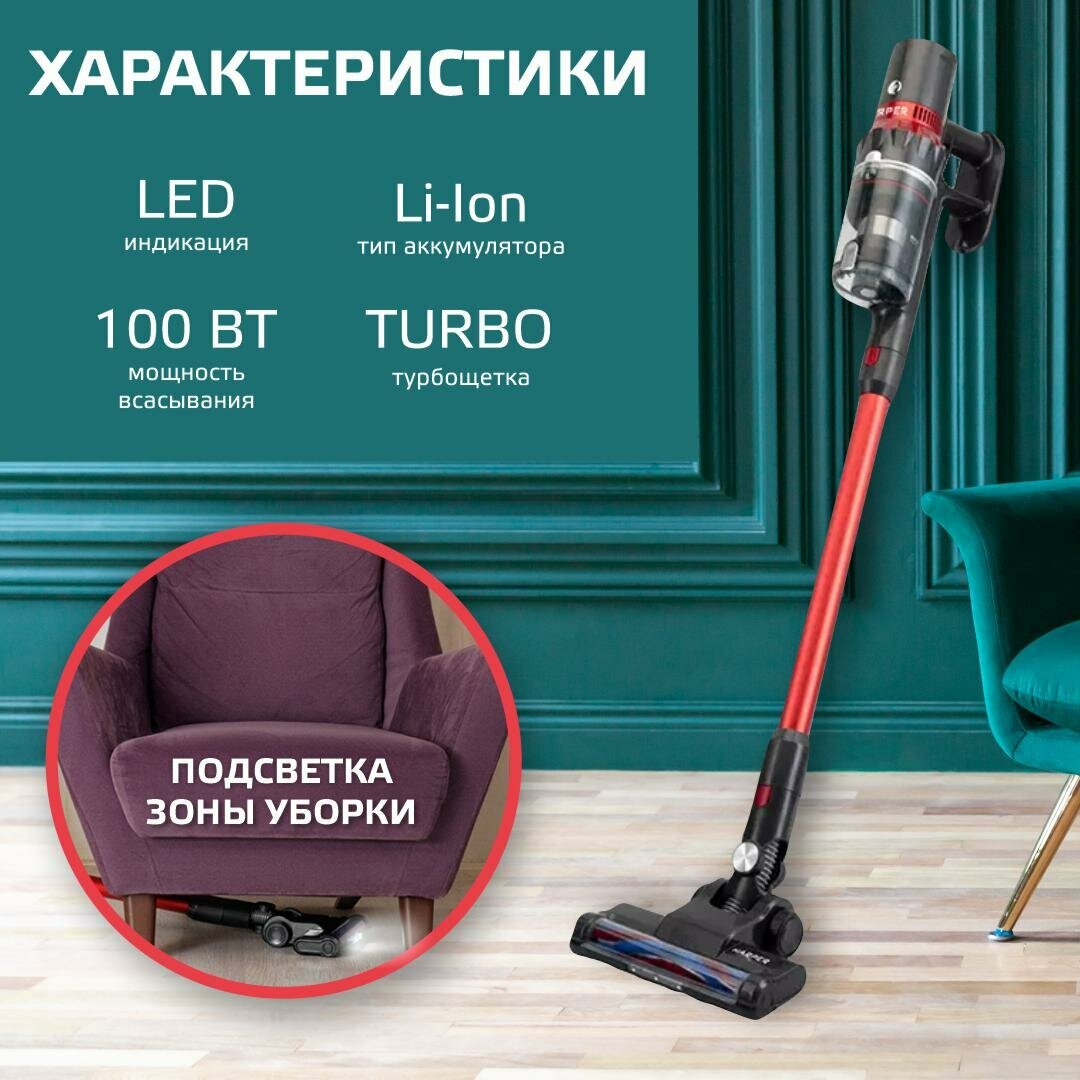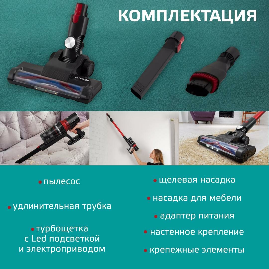 Вертикальный беспроводной пылесос HARPER HVC-VR03 / 3 насадки информация: