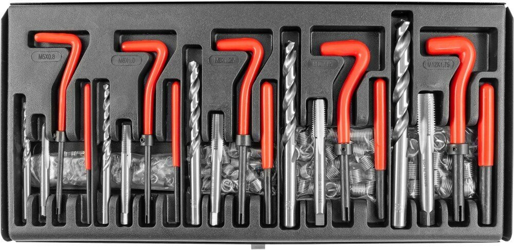 | Дополнительная информация | Набор для восстановления резьбы M5-M12, 131 предмет Thorvik |