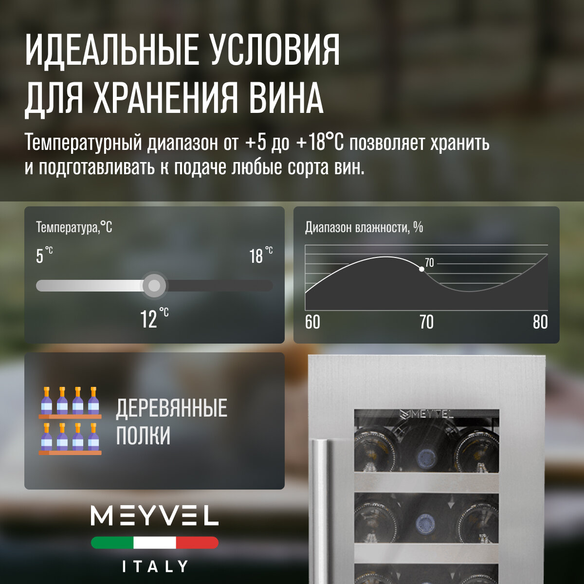 Винный холодильный шкаф Meyvel MV18-KST1 компрессорный (встраиваемый / отдельностоящий холодильник для вина на 19 бутылок) информация: