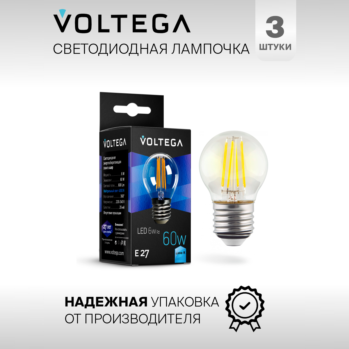 Отзывы на Лампочка светодиодная E27 форма шар 6W нейтральный белый Voltega Crystal Globe 4000K упаковка 3 штуки