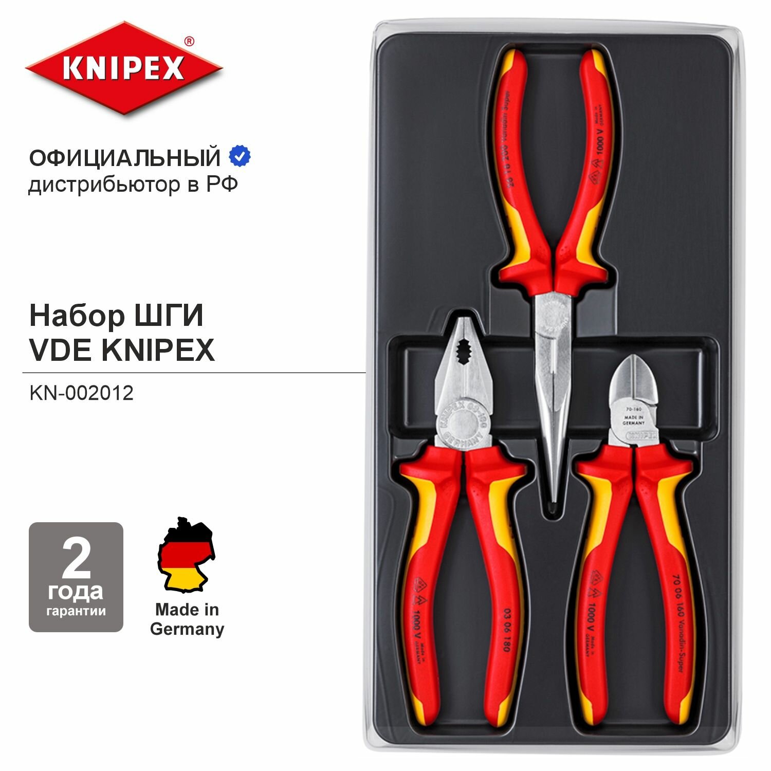 Набор ШГИ VDE в ложементе, 3 пр., KN-0306180 плоскогубцы, KN-2616200 длинногубцы, KN-7006160 бокорезы KNIPEX KN-002012