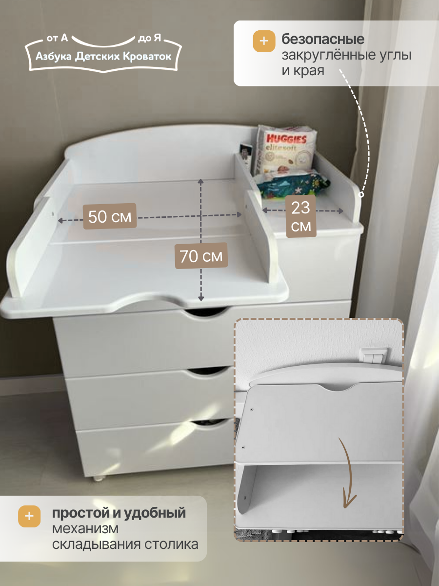 Пеленальный комод Азбука Кроваток Bello, с откидным столиком, фиксаторы колёс, белый информация: