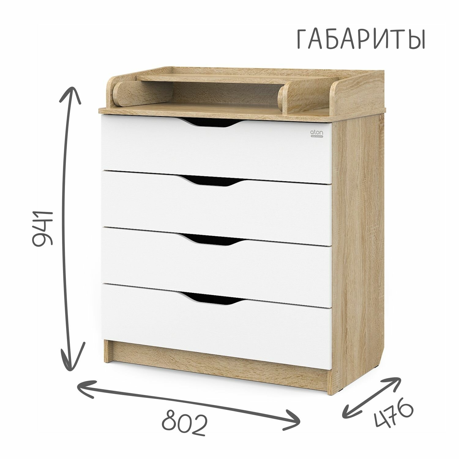 Комод пеленальный Атон Сириус-2 LOFT 804 ЛДСП дуб сонома/белый, 80x48x94 см, 4 ящика информация: