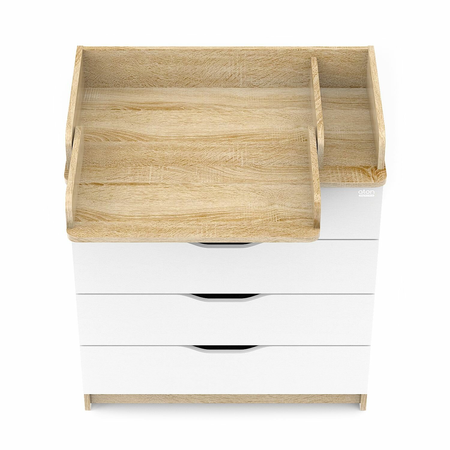 Детский пеленальный комод Атон Сириус 604 с ящиками и полкой, ЛДСП, шимо светлый, белый