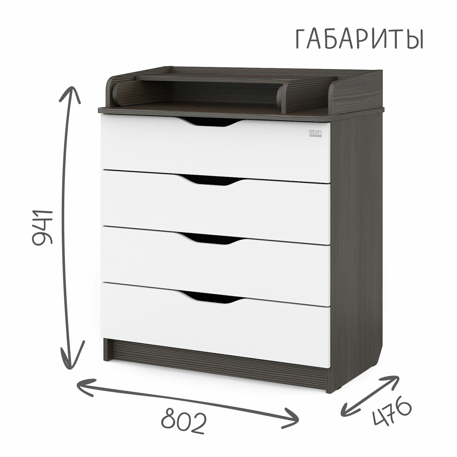 Комод пеленальный Атон Сириус-2 LOFT 804 ЛДСП белый, 80x48x94 см, 4 ящика