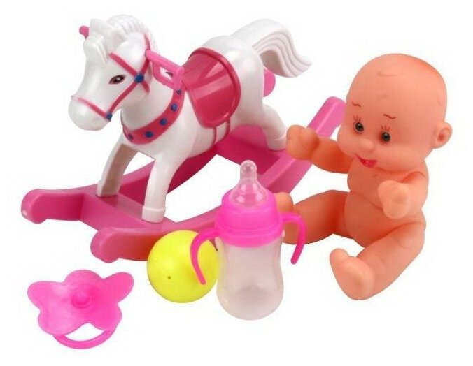 Пупс "Мой малыш" с лошадкой-качалкой и другими аксессуарами, в наборе из 5 предметов
