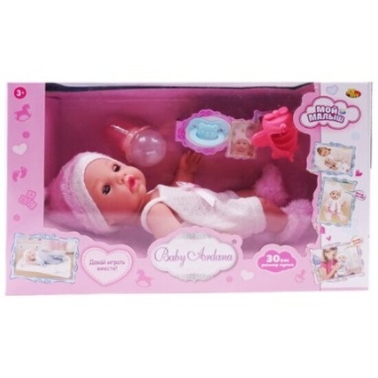 Пупс Baby Ardana, 30см, в ажурном комбинезончике, шапочке и носочках, в наборе с аксессуарами, в коробке - ABtoys [PT-01416]