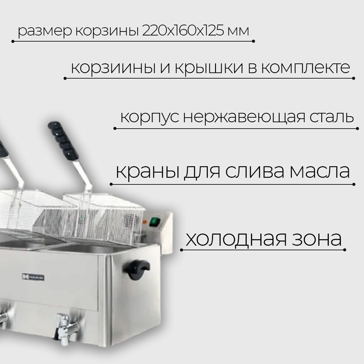 Фритюрница электрическая HURAKAN HKN-FT88N. 6.5 кВт, 16 л, нержавеющая сталь, 2 крана для слива масла информация: