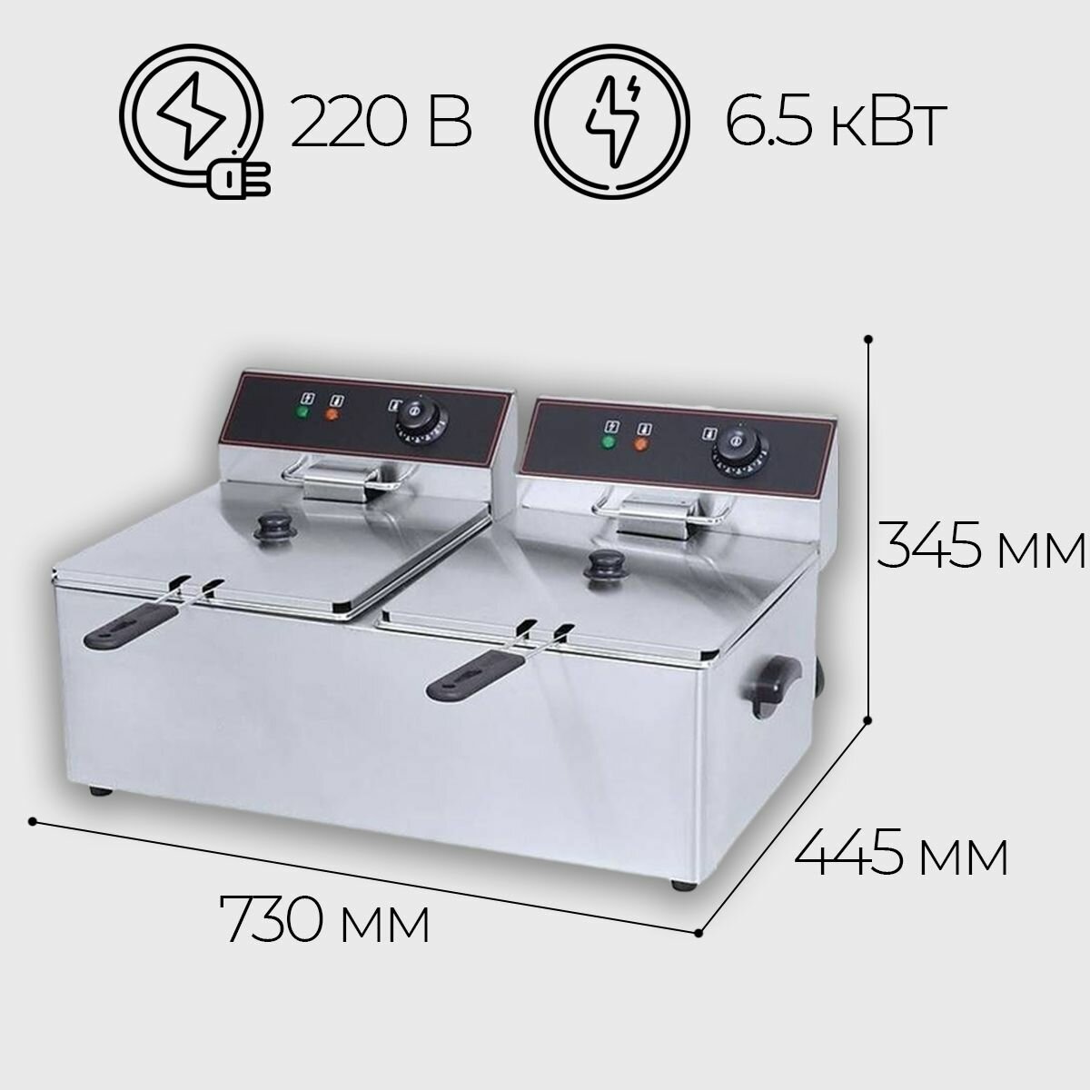Фритюрница HURAKAN HKN-FD1111N. 6.5 кВт, 22 л, нержавеющая сталь информация: