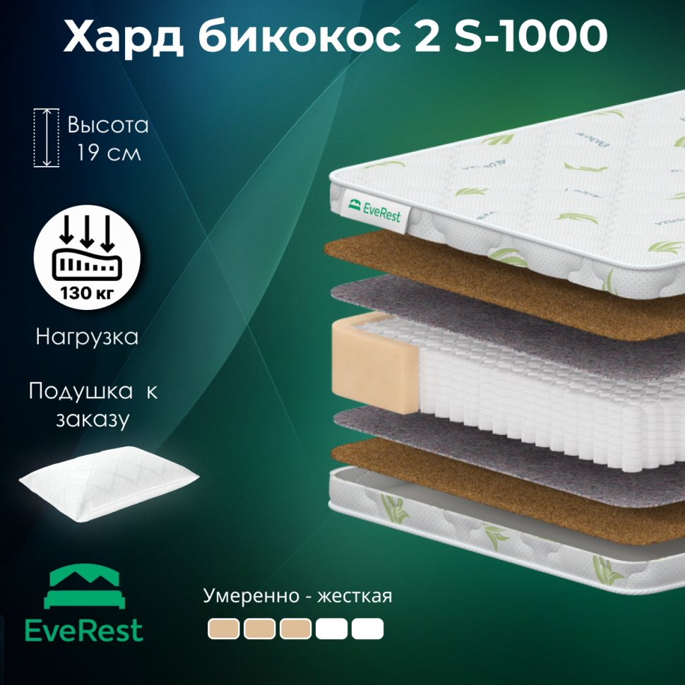 Отзывы на Матрас Everest Хард бикокос 2 S-1000 180х210 см, независимый пружинный блок S1000, трикотаж