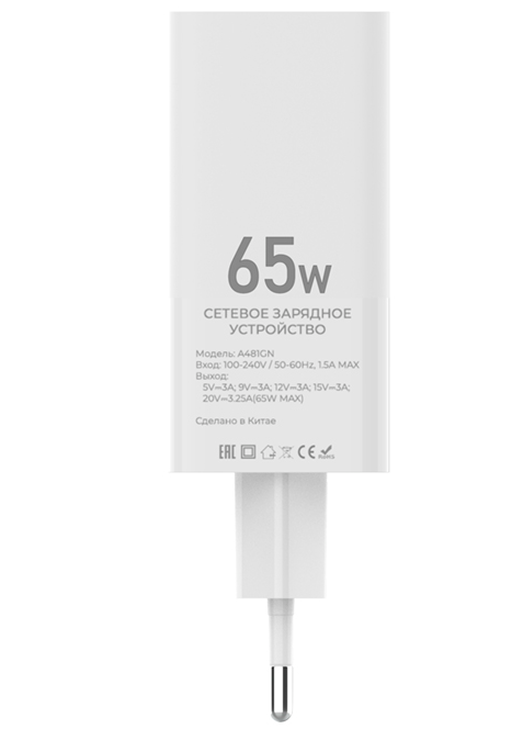 Сетевое зарядное устройство Maxvi 65W GAN A481GN Белый Type-C информация: