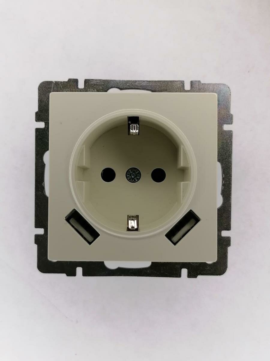 Розетка с заземлением шторками и USBх2 бежевый W1171562 информация: