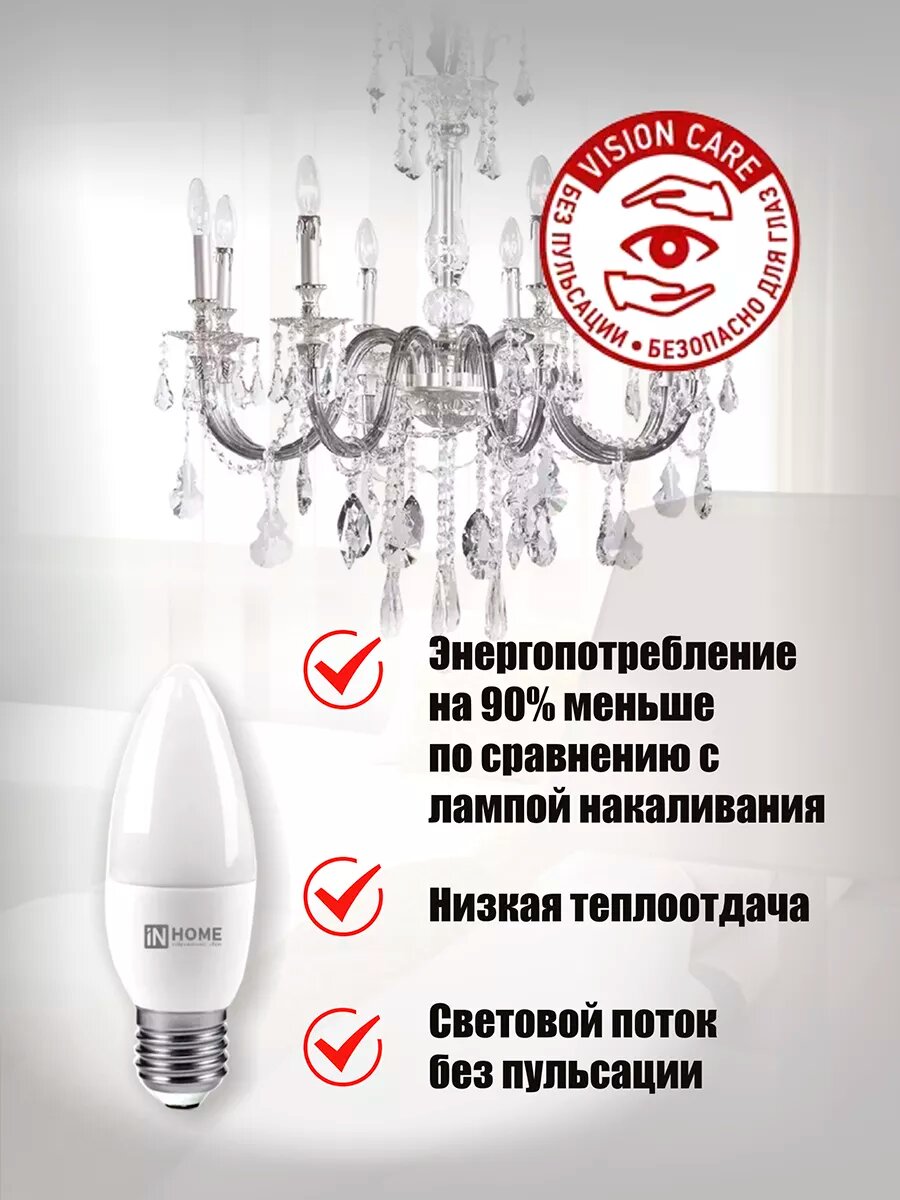Отзывы на Лампа светодиодная IN HOME LED 8Вт 230В Е27 4000К 760Лм, свеча, нейтральный белый, 10 шт