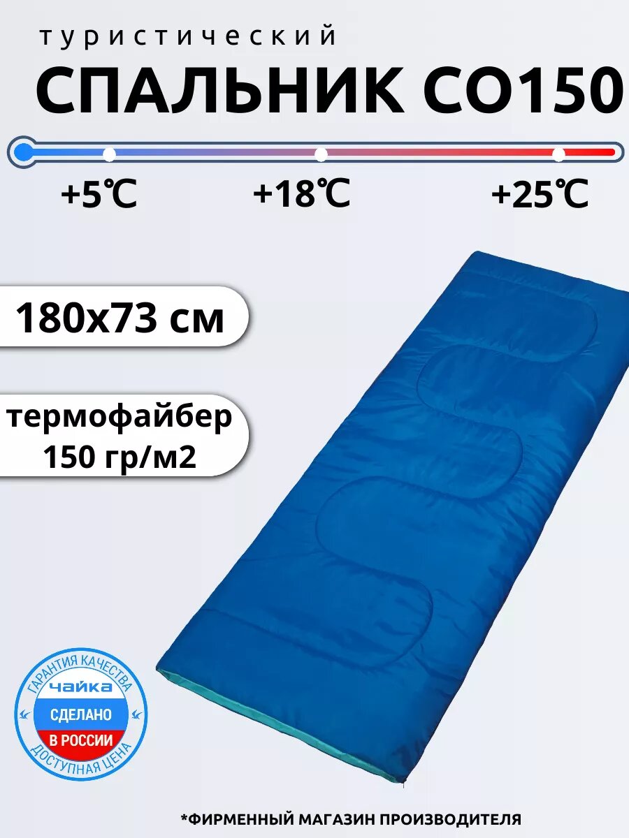 Спальный мешок Чайка СО150, туристический, кемпинговый, термофайбер, 180х73 см информация: