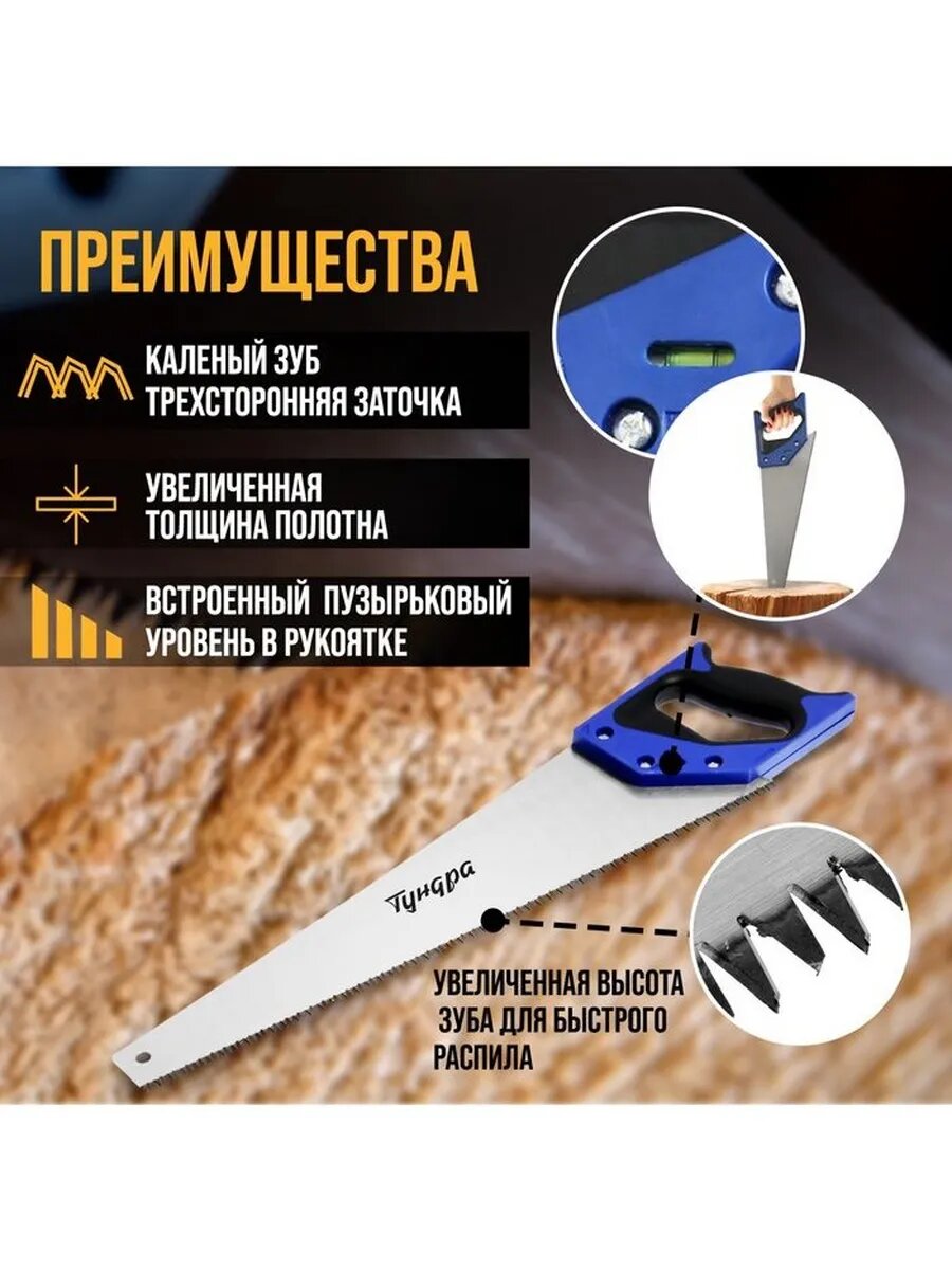 10 цен на Ножовка по дереву тундра, 2К рукоятка, 3D заточка, каленый з