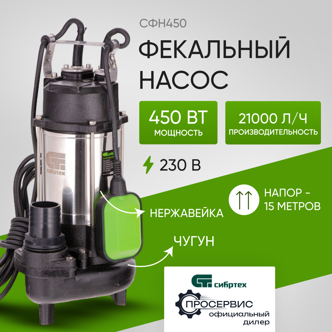 Отзывы на Фекальный насос Сибртех "СФН450", погружной, 450Вт, глубина погружения 5м