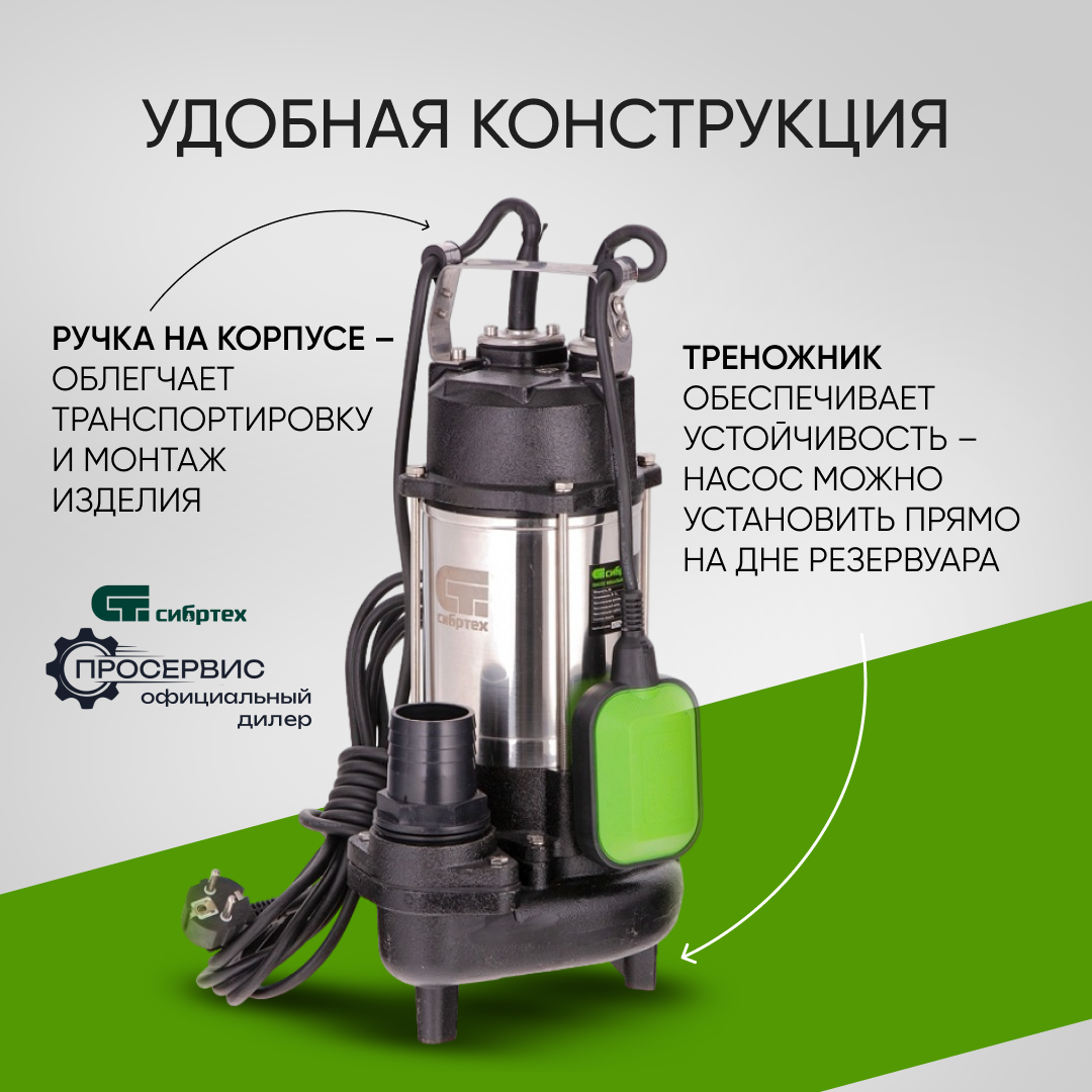 Фекальный насос Сибртех "СФН450", погружной, 450Вт, глубина погружения 5м информация:
