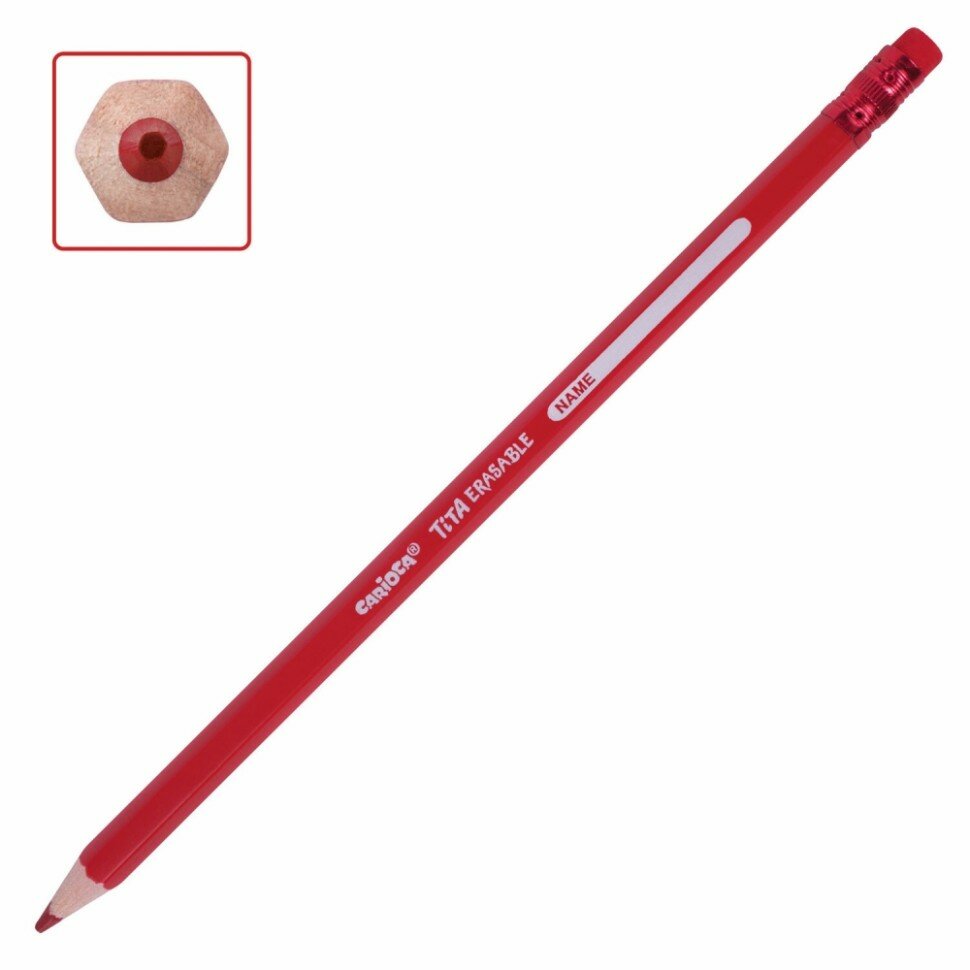 Карандаши цветные стираемые с резинкой CARIOCA "Erasable", 12 цветов, пластик, шестигранные, заточенные, 42897 - 1 шт.