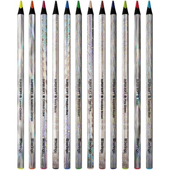 Карандаши цветные Berlingo "SuperSoft. Starlight, 12цв., заточен., лазерная пленка