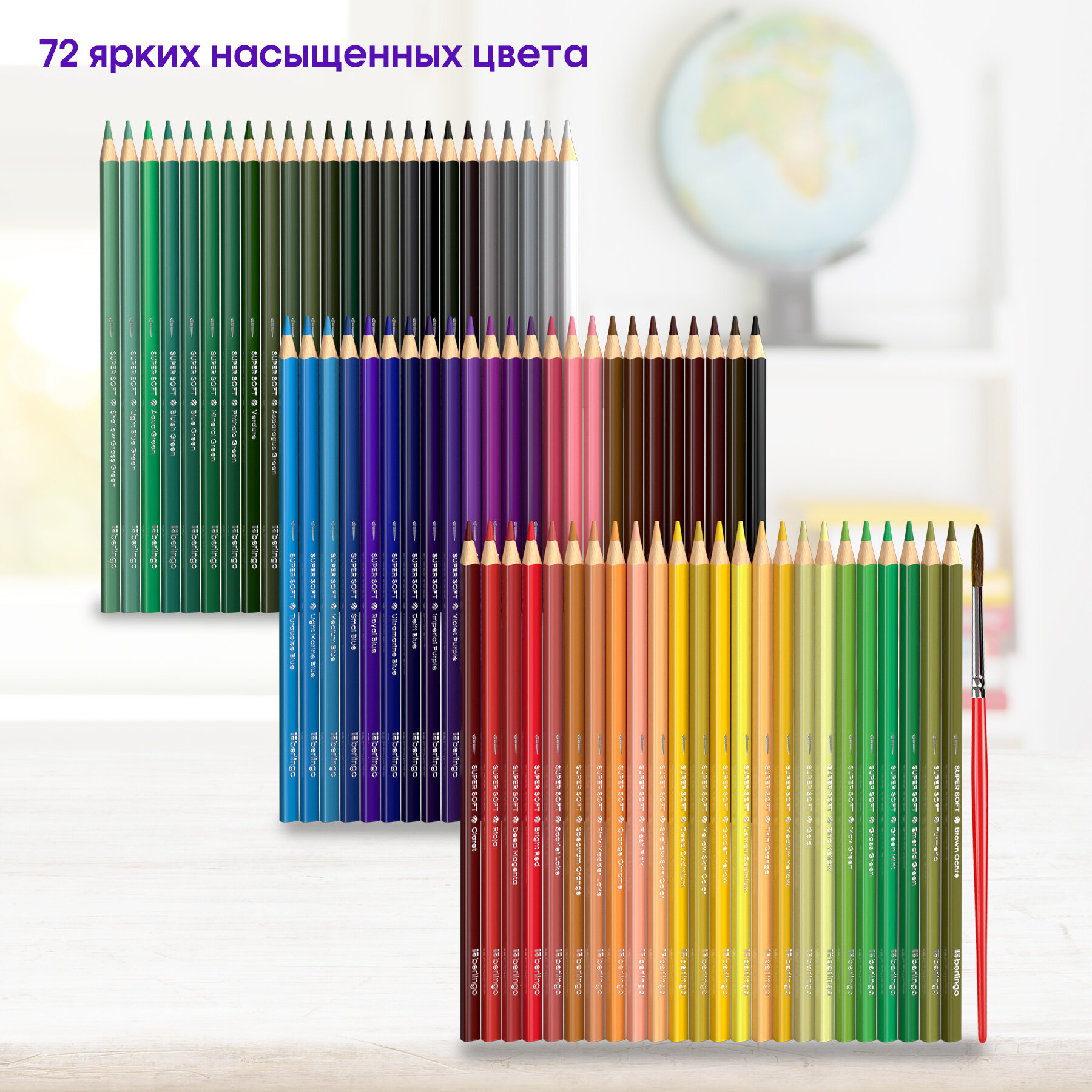 Цветные карандаши для школы акварельные 72 цвета, трехгранные / Набор цветных карандашей для рисования школьный Berlingo "SuperSoft. Рыбки" информация: