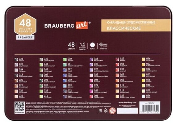 Карандаши Brauberg цветные художественные ART PREMIERE, набор 48 цветов, 4 мм, металл кейс, 181694 информация: