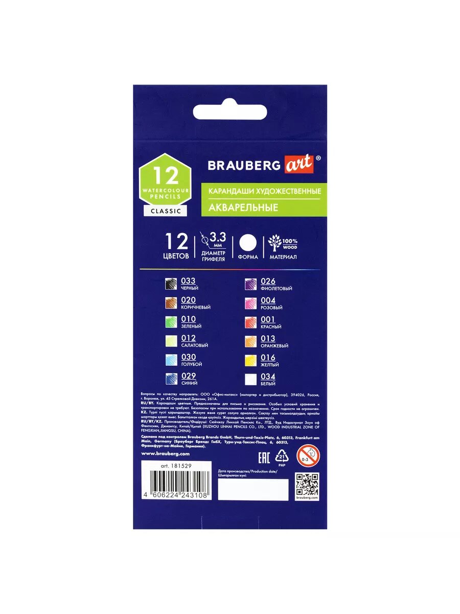 BRAUBERG Карандаши художественные цветные акварельные Art Classic