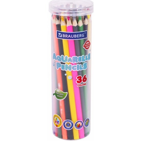 Отзывы на Карандаши цветные Brauberg акварельные PREMIUM AQUARELLE 36 цветов в тубе, трёхгранные, мягкие, 181933
