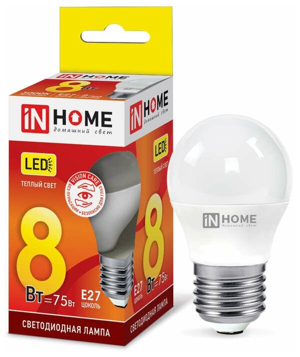 Отзывы на Лампа светодиодная LED-ШАР-VC 8Вт 230В E27 3000К 720лм IN HOME 4690612020563 (5шт. в упак.)