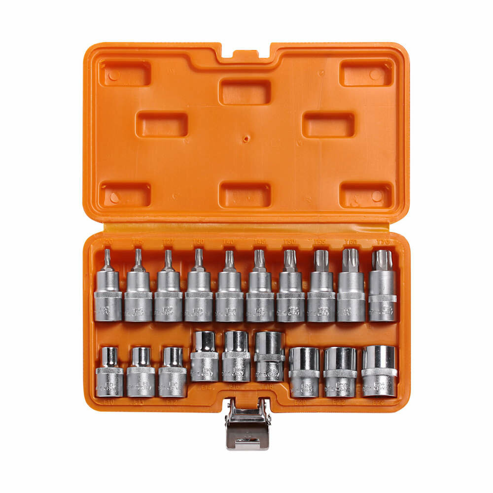 Набор головок 1/2 дюйма DR TORX E10-E24 и головок со вставками TORX T20-T70 55мм 19 шт