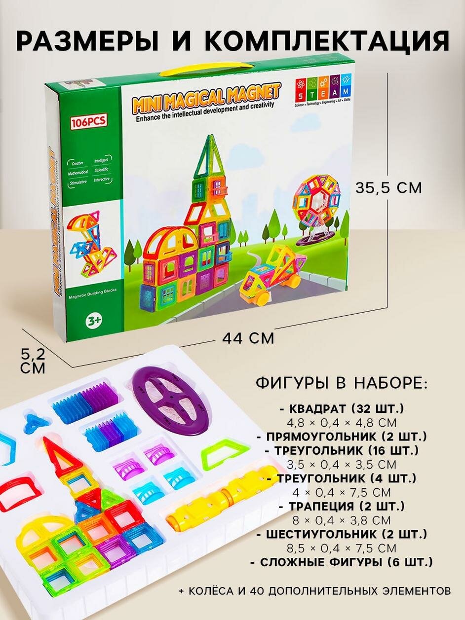 Конструктор магнитный «Мини магический магнит», 106 деталей