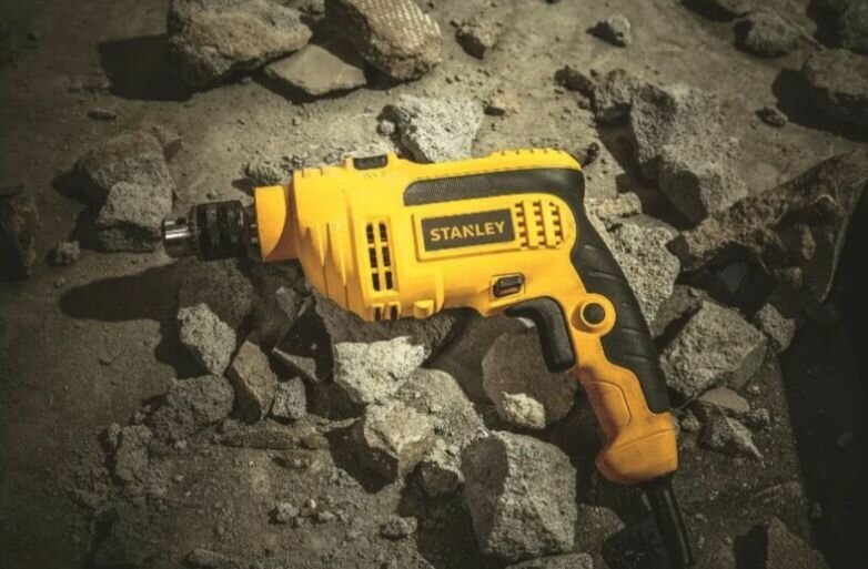 Ударная дрель STANLEY SDH600 от сети, мощность 600 Вт, одна скорость, 2900 об/мин, 49300 уд/мин, ключевой патрон 13 мм, желтый/черный