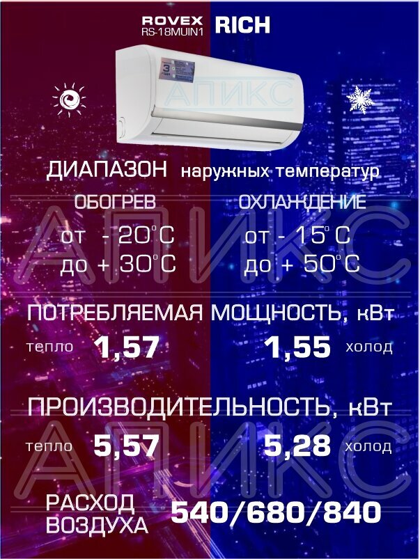 Сплит-система инвертер ROVEX RICH RS-18MUIN1 кондиционер бытовой до 54м2 информация: