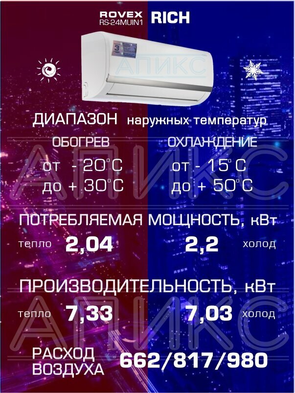 Сплит-система Rovex RICH RS-24MUIN1, инверторная, Wi-Fi, теплый пуск информация:
