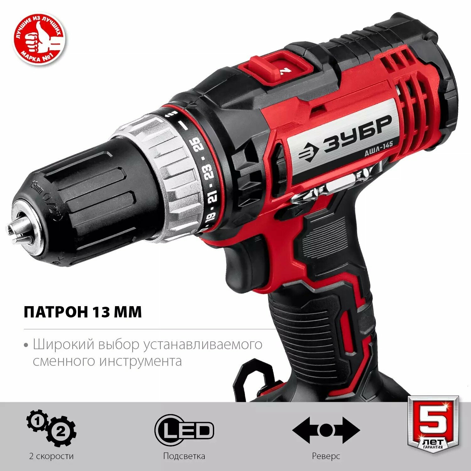 10 цен на Дрель-шуруповерт ЗУБР ДШЛ-145-21, 14.4В, 2 Ач, аккумуляторная