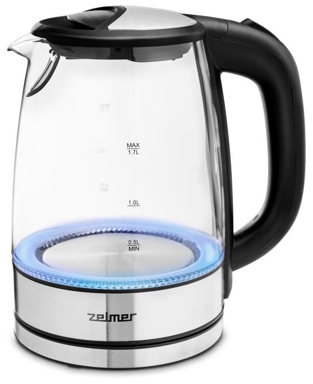 10 цен на Чайник ZELMER ZCK8024, 2200Вт, 1.7л, металл/стекло, серый/черный