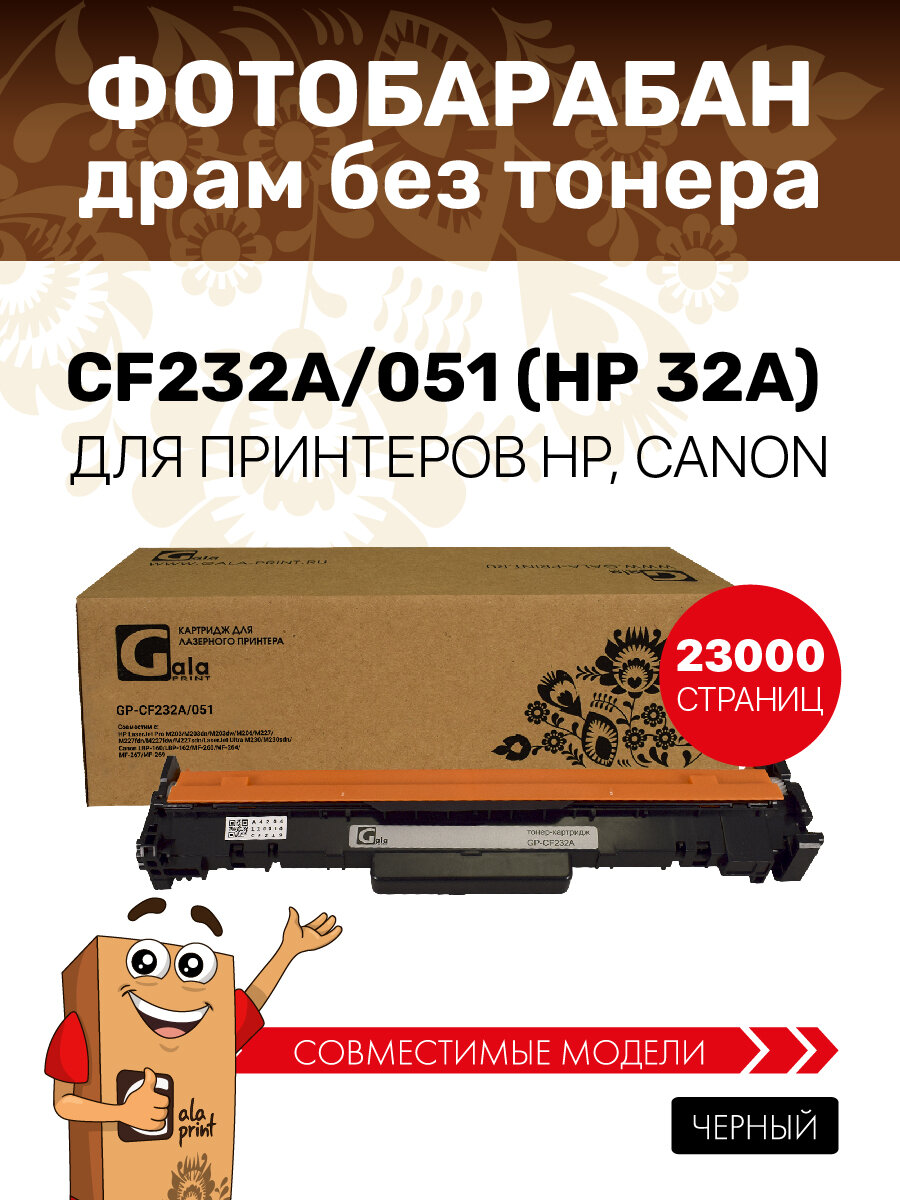 10 цен на Фотобарабан GalaPrint CF232A/051 (HP 32A) для HP LaserJet Pro M203/M206/M227 и др. 23000 копий лазерный, цвет черный