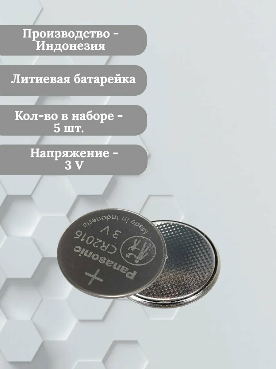 Батарейка Panasonic CR2016 литиевая 5 шт. с напряжением 3 В информация: