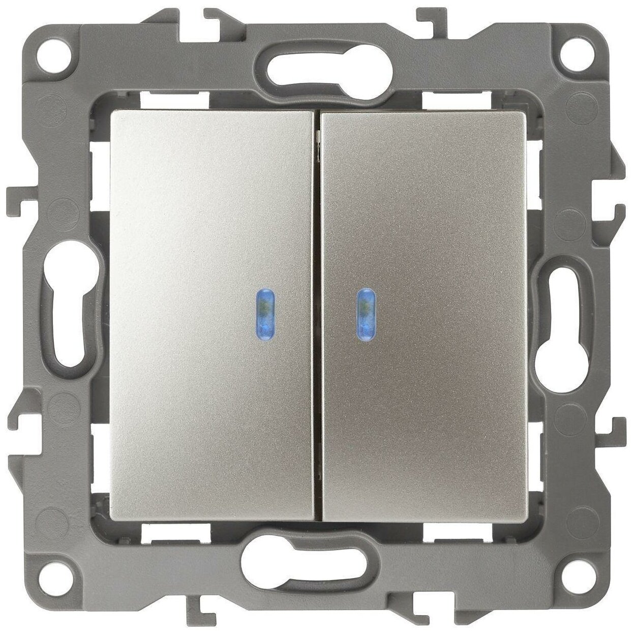 12-1105-04 ЭРА Выключатель двойной с подсветкой, 10АХ-250В, IP20, Эра12, шампань (10/100/2500)