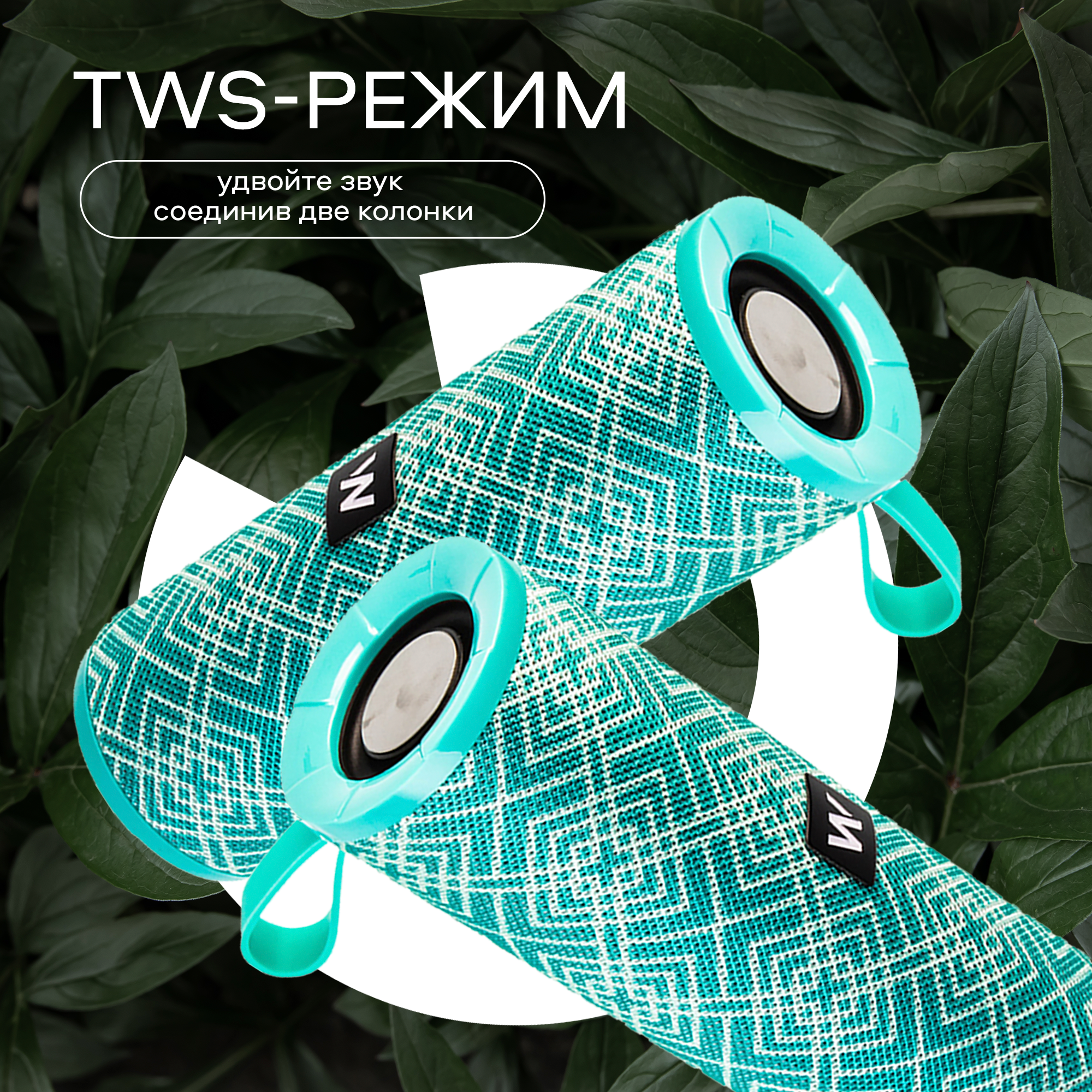 Портативная колонка bluetooth 5.0, 2 динамика по 5Вт, блютуз колонка беспроводная, колонка музыкальная jbl, бирюзовая 1 447 ₽