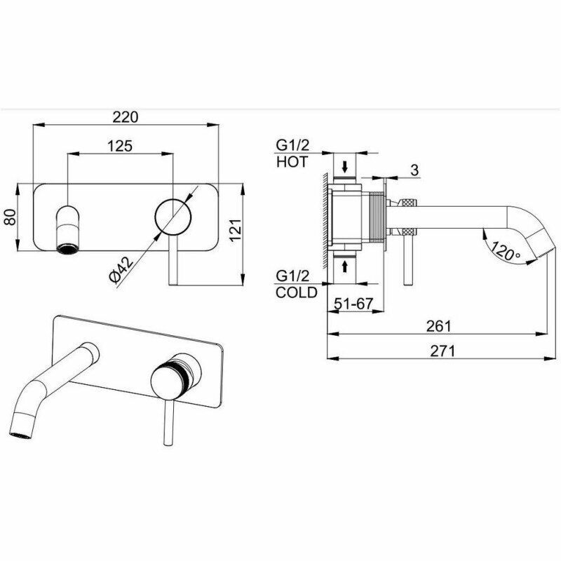 Смеситель на раковину настенный Эверест B46-350 с круглым поворотным изливом, кран-буксы 1/2", хром Смеситель на раковину настенный Эверест B46-350 с круглым поворотным изливом, кран-буксы 1/2", хром